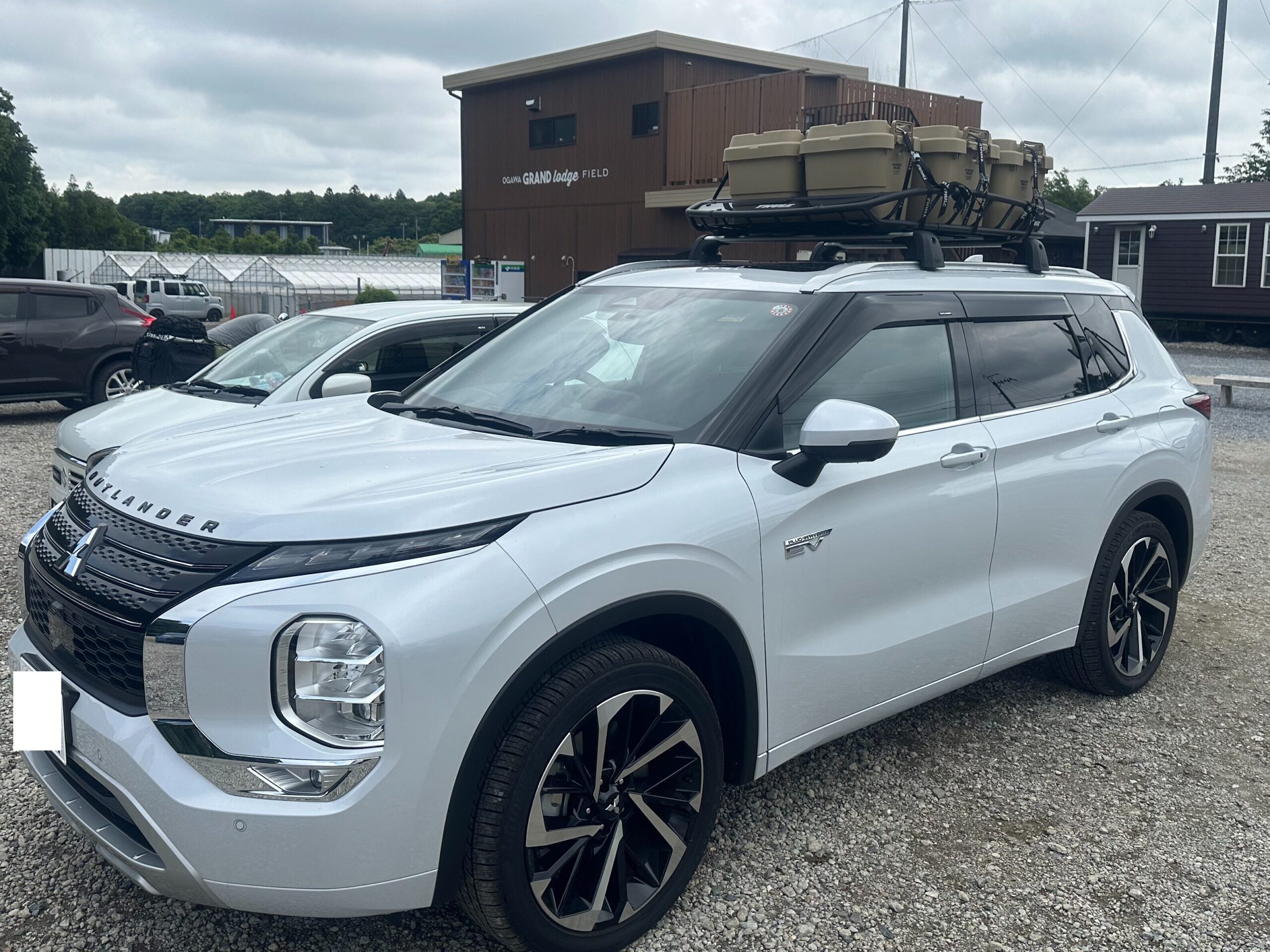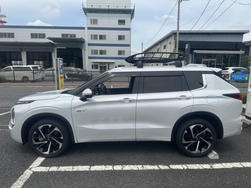 残るはスーリーでしたが、アウトランダーPHEVにスーリーをつけた感じがイメージしづらく、つけた写真をネットで探してもあまり出て来ず。