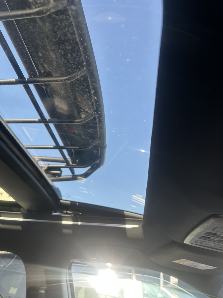 気にしていたパノラマサンルーフから空の眺めはこんな感じ。(ガラスが汚くてすみません。)